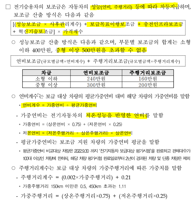 위 표를 보면, 전기차 보조금은 성능보조금과 인센티브로 나눌 수 있습니다.