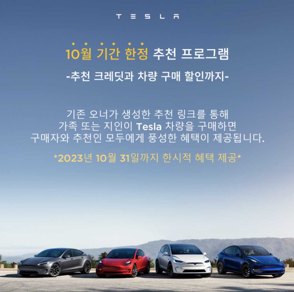 테슬라에서는 '리퍼럴 추천' 프로그램을 운영하고 있습니다.